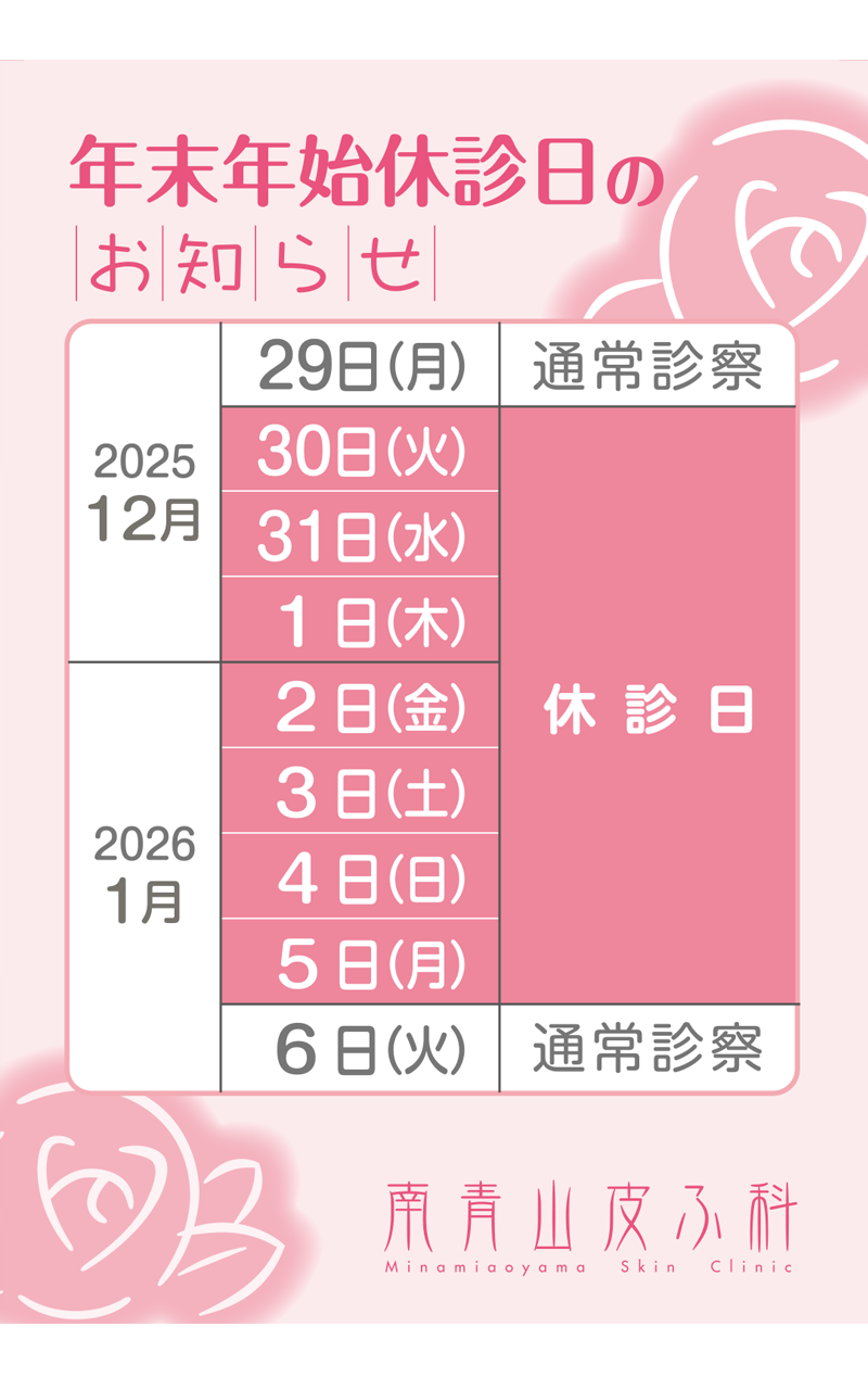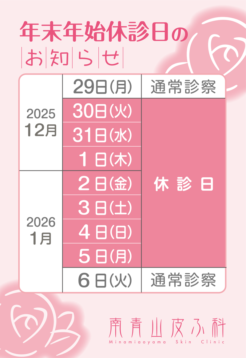 - 12月29日(日)〜1月5日(日)は休診とさせていただきます。